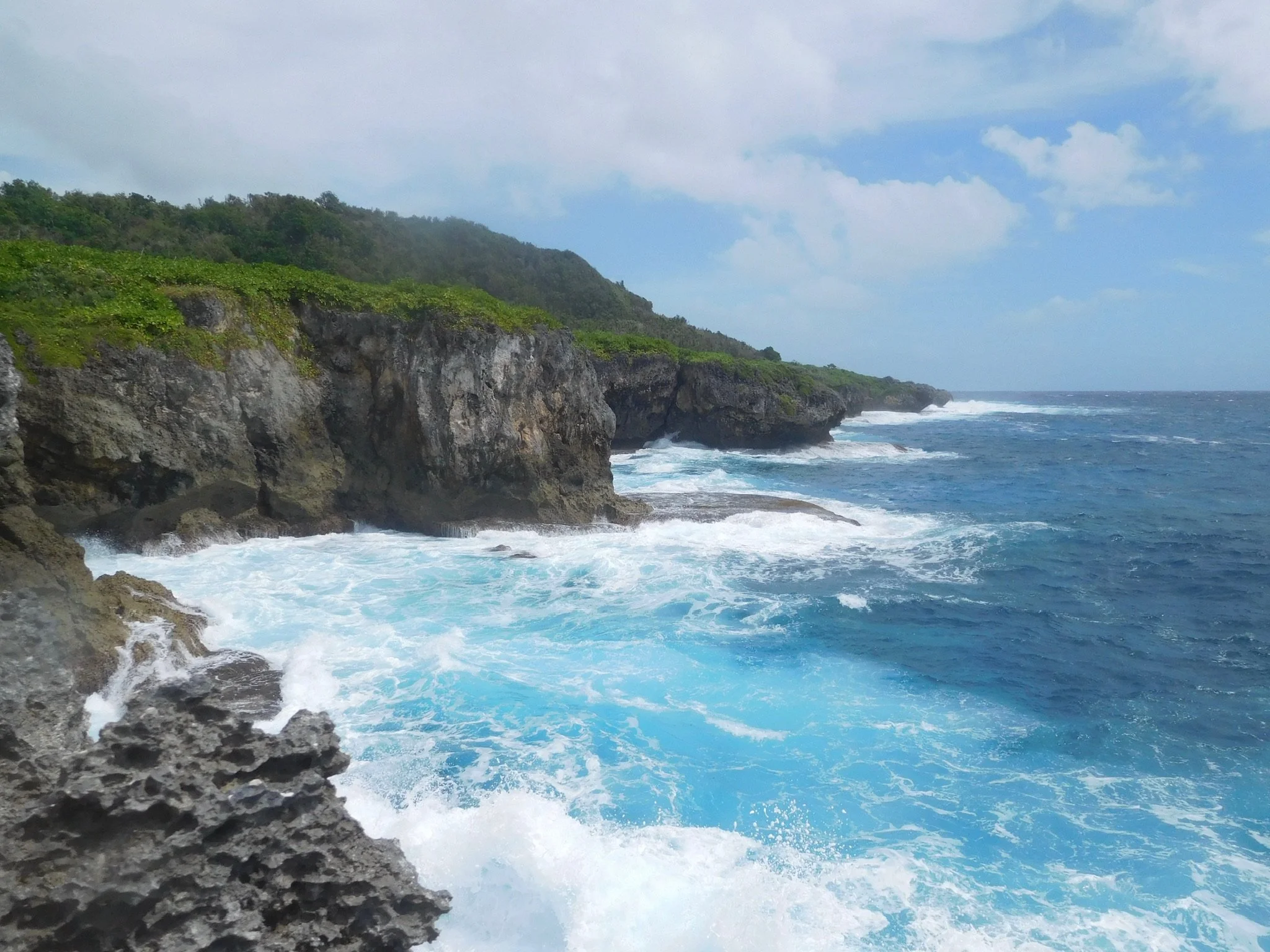 Excuse me for a second while I express myself in the ways that my rage wants to lead the way in this piece of writing and how I feel about hiking in a sacred space and making our way to the roaring waves where our ancestors’ spirits lay ~ yes ~ best believe that on our way to the roaring waves we see hella haoles ~ even haoles disrespecting the caves ~ yes ~ best believe we smelt cigarette in the fresh water caves where we wanted to pay our respects on our way to the coast where the waters express their rage ~ and yes it feels we are the only CHamorus in this moment today, outsiders luring each other to see who dares to take a swim today, so I told them straight